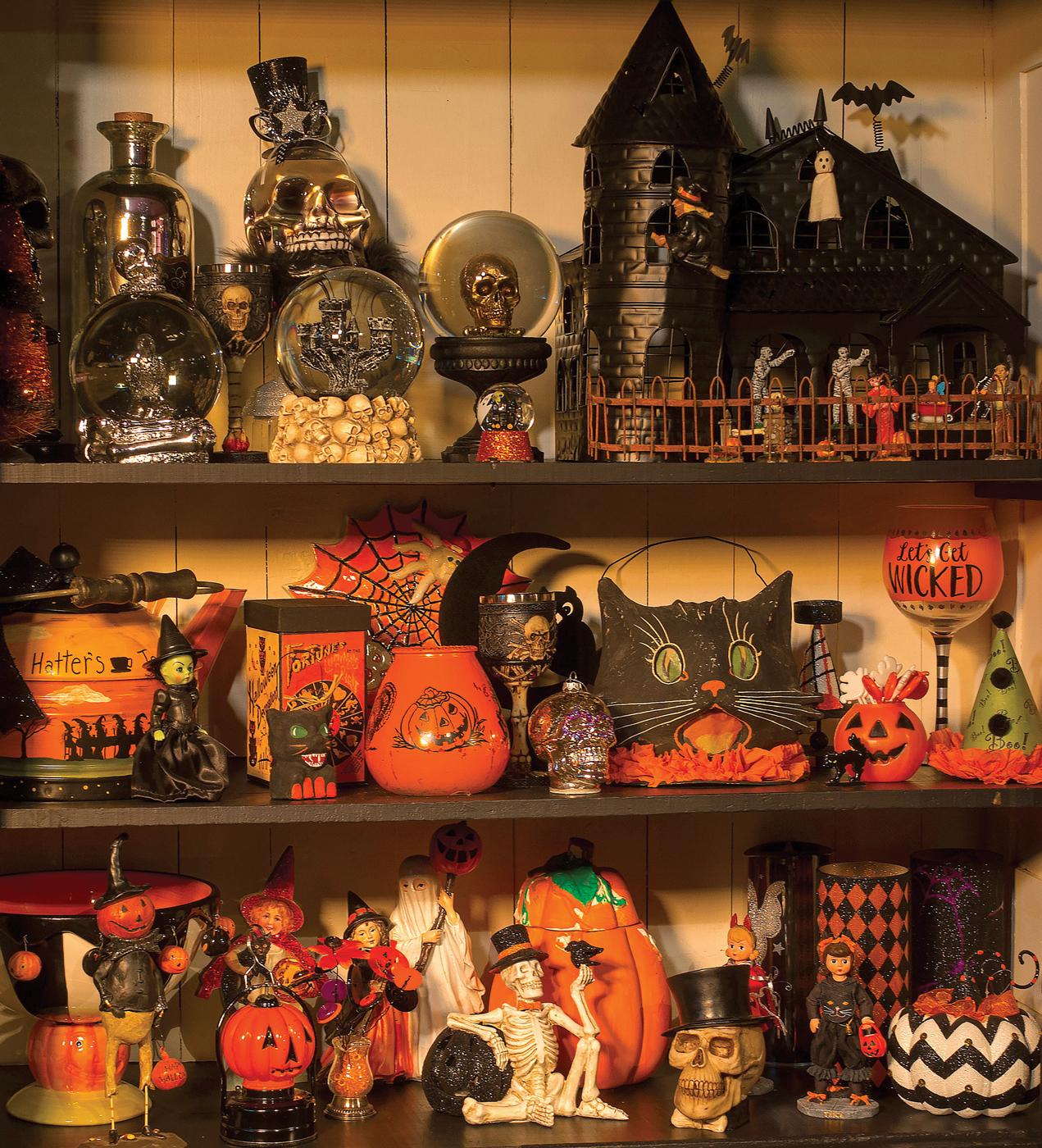 The Brubakers have spent the last 16 years collecting. “I’ll buy anything having to do with Halloween,” Gary says of the vintage décor he prefers. However, finding vintage decorations in mint condition is becoming more difficult, so the Brubakers have widened their web and will often hop in the car and head for the unknown, having heard or read about a promising source that could be several hours away. “Everywhere we go, we look for different and unique stuff,” Denise says.