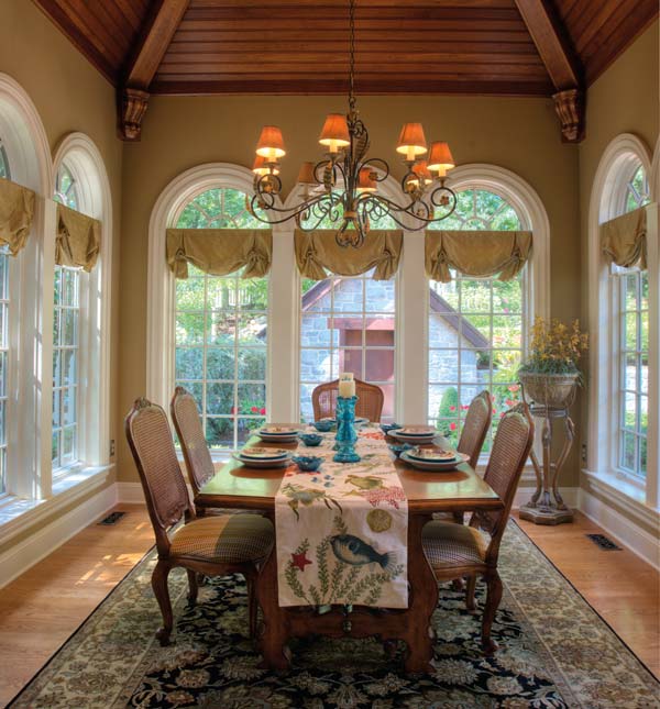 Architect Don Klinger designed a dining room that captures the architectural details of the colonial era, plus provides the feeling of being one with nature.