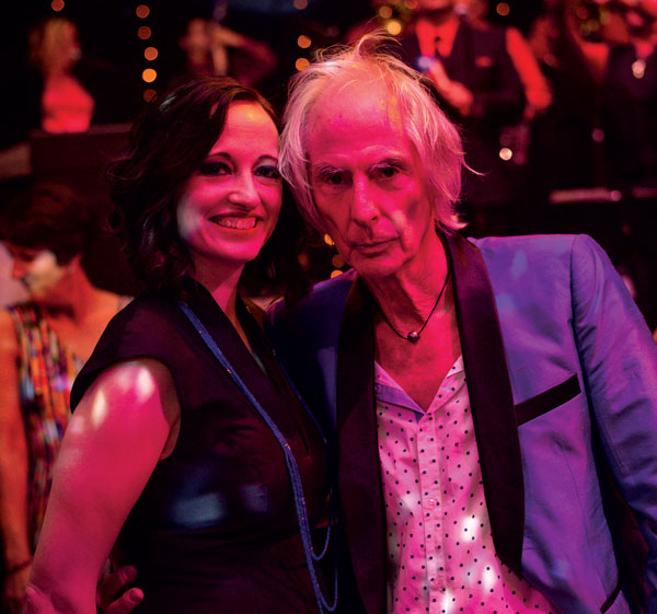 Nail polish was available on each table for those who wanted to join Mickey’s signature rock star look of the painted pinkie nail. Candy cigarettes allowed guests to pretend to indulge in the once-chic vice. High above the crowd, the room’s 35-foot ceiling was visually lowered to give the room a more intimate feel through swagged strands of thousands of tiny LED lights, custom-made to span the width of the room.