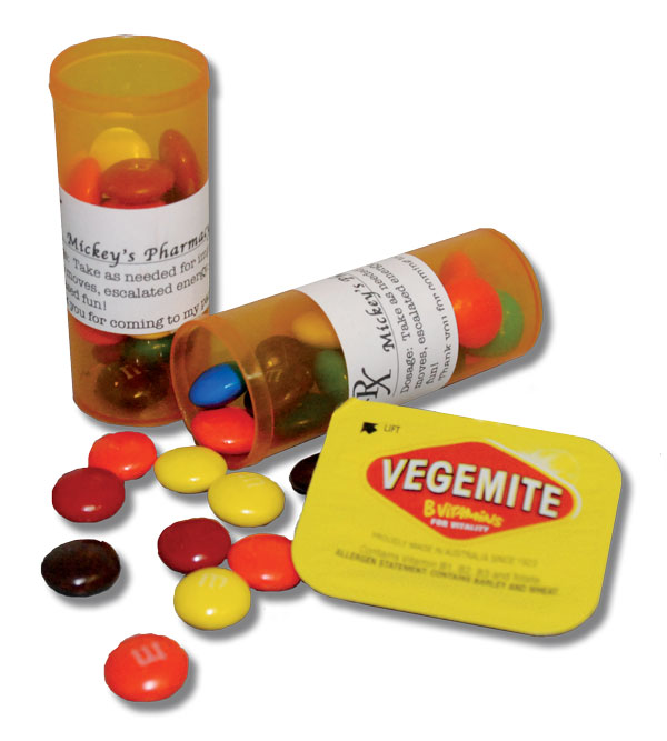The party was newly energized with another reason to celebrate for hours on end. When guests finally called it a night, they were offered a take-home gift of Mickey’s native Australia’s signature Vegemite and a “prescription” pill bottle filled with M&Ms for the morning after, guaranteed to preserve one’s youth.