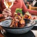 Popular items include pork and duck meatballs made in-house and served with a house-made smoked diablo sauce and parmesan bread baked in the wood-fired oven. Another favorite is chicken nuggets and crispy Brussels sprouts, which are served at both The Exchange and Plough and are only offered on the fall/winter menu. Entrées include short ribs poutine, spicy crab bucatini, a wood-fired steak and a burger made from aged prime beef.