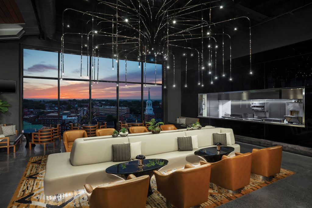 Are you looking for a unique location to take in the holiday lights and décor of downtown Lancaster this December? If so, look skyward! Perched atop the 12th floor of the Lancaster Marriott at Penn Square’s East Tower, The Exchange provides stunning views of downtown Lancaster, especially by night.