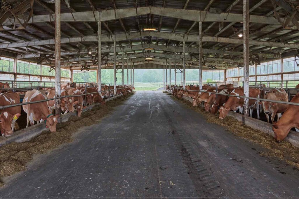 The dairy barn on the farm is a repurposed warehouse. The structure offers higher ceilings and a larger footprint than is typical for a herd of 50 cows. What some farmers may consider excessive, Kevin considers essential. Fans and expansive windows allow for maximum ventilation to keep the cows cool in the summer. Herd health also ensures the highest quality buttermilk fat content and optimal milk production.