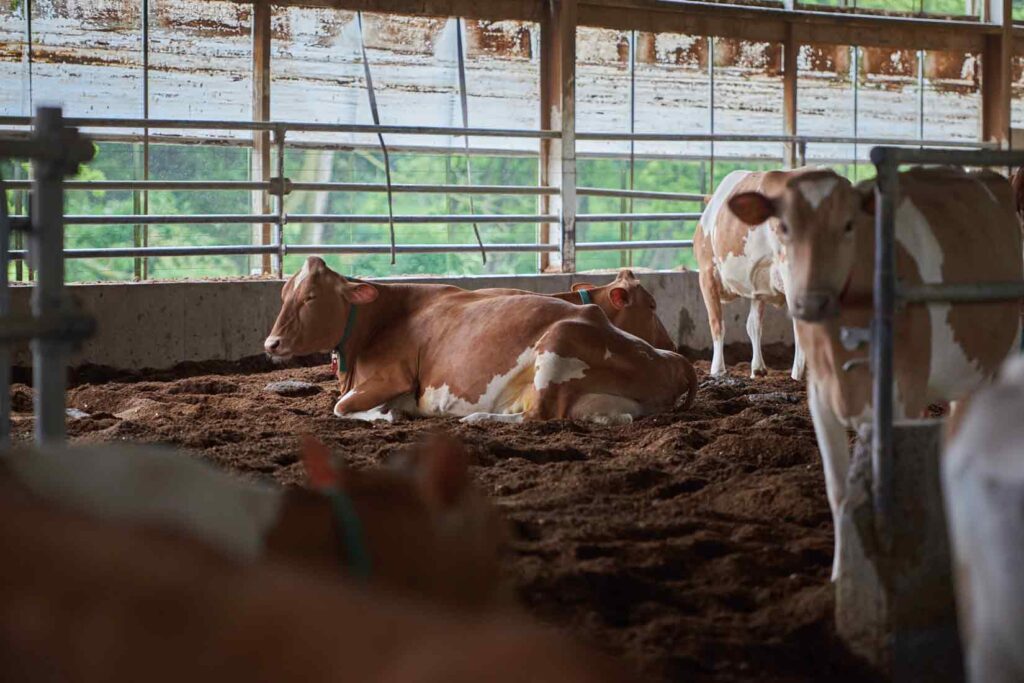 Resting is a key element of herd health and productivity. Here the cows have ample room to rest and chew their cuds.