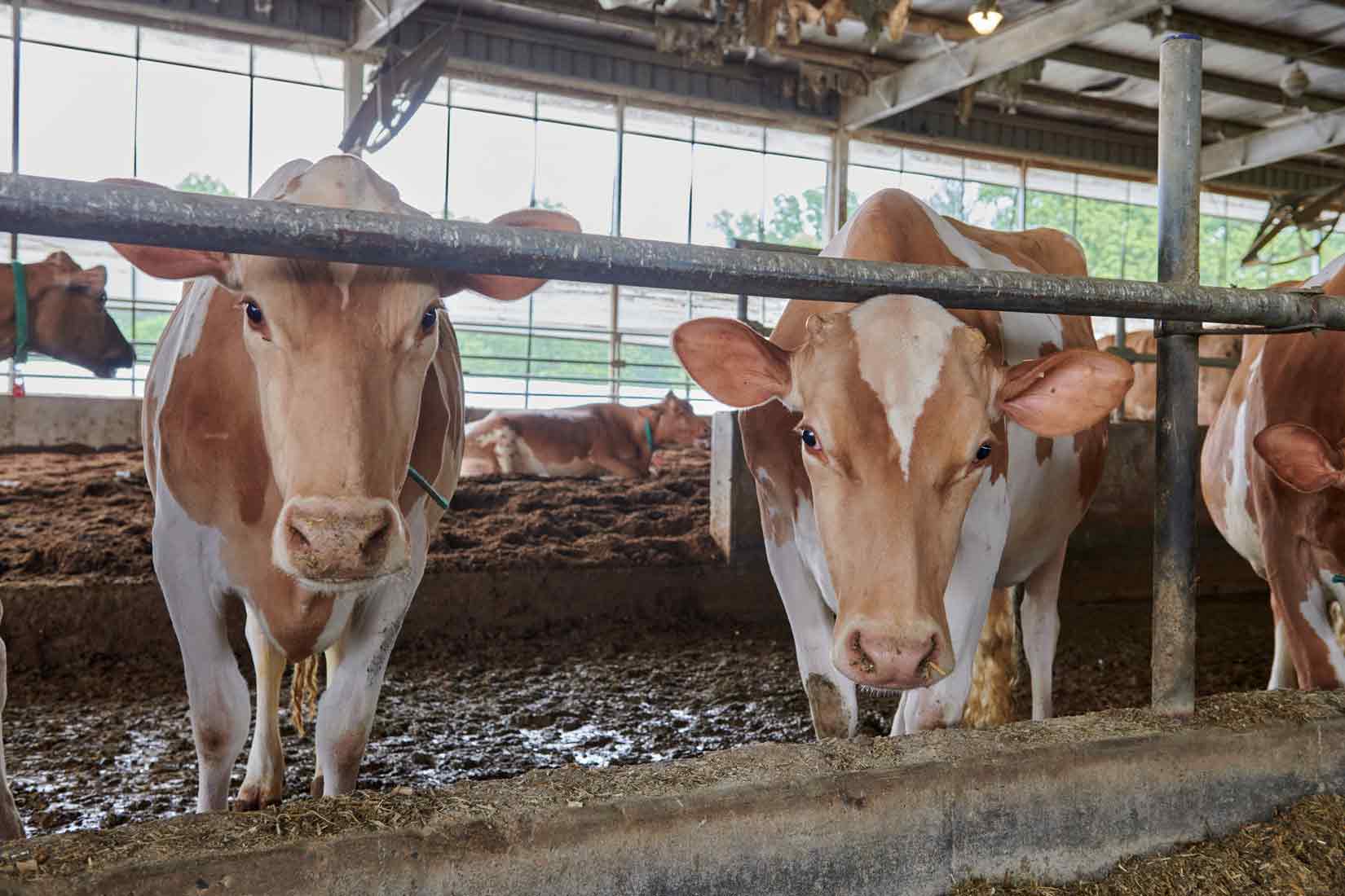 “We go to extreme lengths to keep things clean and comfortable for the cows,” says Kevin. Milked twice daily – typically at 4 a.m. and again at 4 p.m. – each milking takes about an hour. During those times, the compost bedding is tilled over in the empty dairy barn. After the morning milking, the herd spends the day in the barn or pasture, resting and grazing on grass. Cows have four compartments in their stomachs and “chew the cud” to digest food properly, often while lying down. Rest is a key component to the health of a dairy cow, and these Guernsey cows have ample room to stretch out.