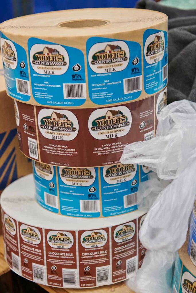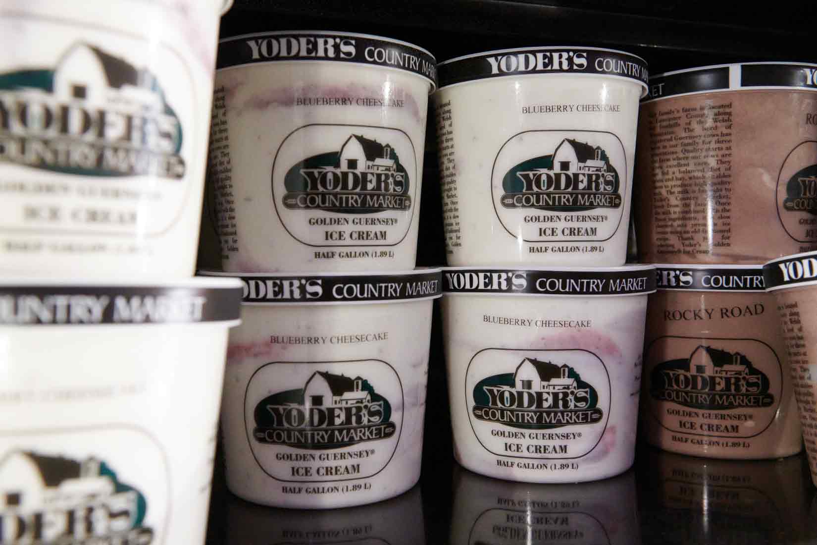 From the farm, the milk travels a few miles down the road to Yoder’s Country Market. “The milk left the farm this morning and it’ll be in bottles at noon,” says Kevin of that morning’s yield. Viewable through a window at the market, Golden Guernsey milk is bottled and then sold a few feet away. “The next day, the cream is added to milk and ingredients to make ice cream mix,” he explains.
