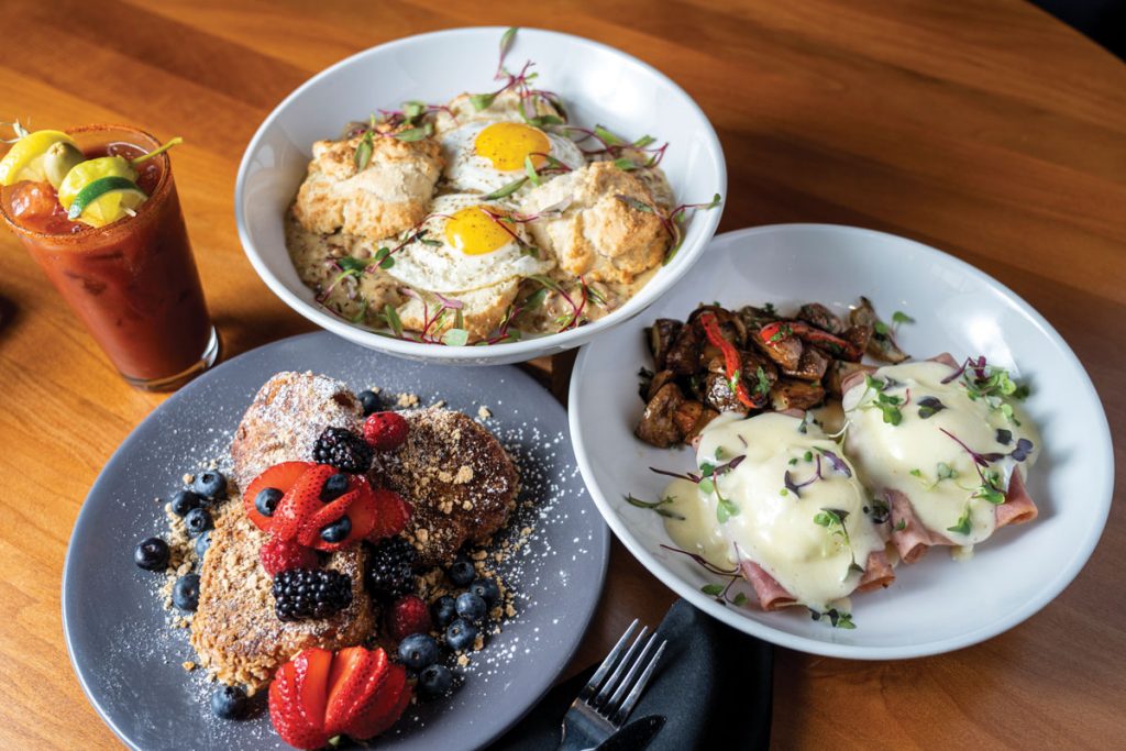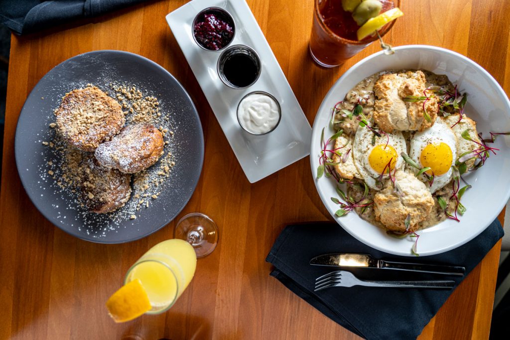 The brunch menu features such dishes as biscuits and gravy, eggs benedict and oats and wheat pancakes served with assorted fruit.