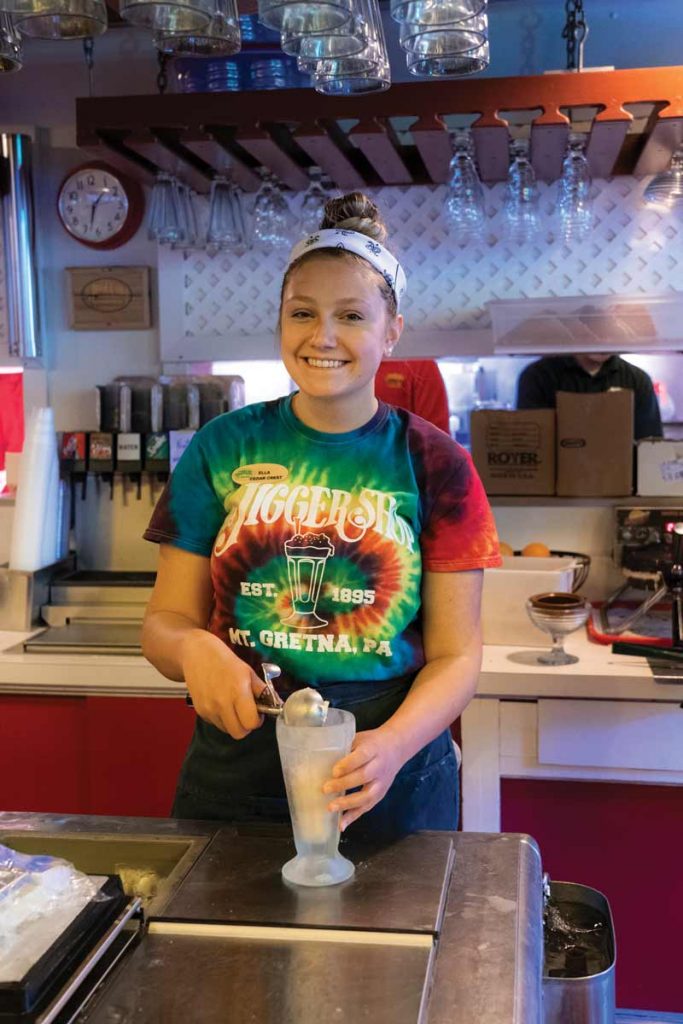 Nostalgia is part of The Jigger Shop’s allure – its roots can be traced to a traditional Mount Gretna cottage. It remains a place where you can relax, indulge and enjoy nature. In order to capture the ambiance of an old-fashioned ice cream parlor, Beth points out that The Jigger Shop does not have Wi-Fi. “We want it to be a family experience,” she says. “We want guests to talk with one another rather than focus on their phones.”