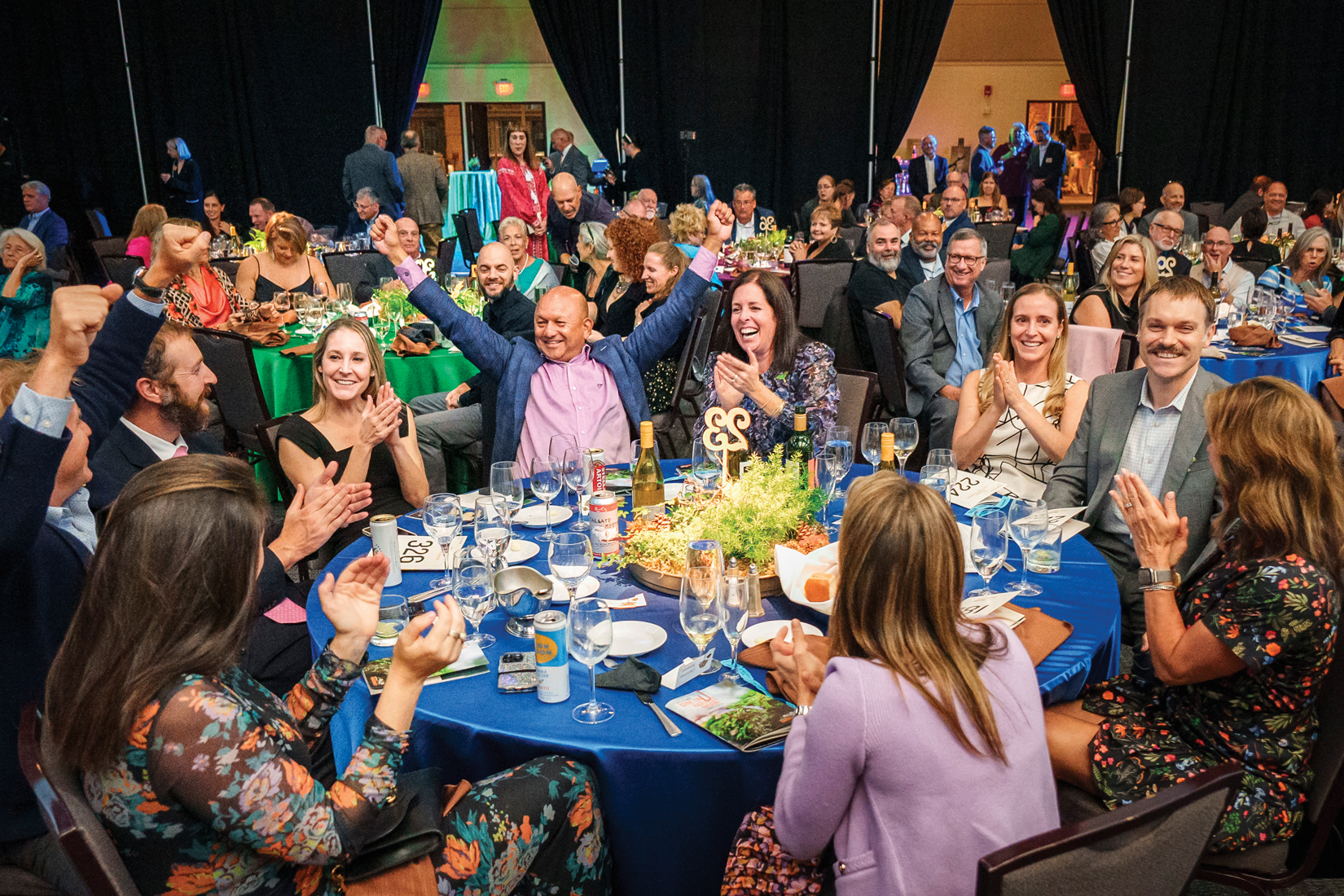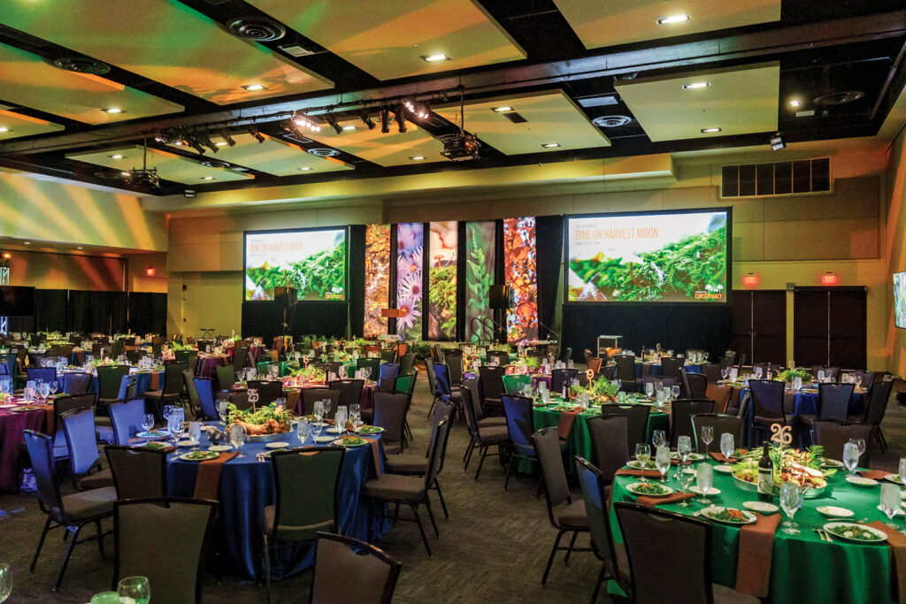 The Conservancy is meeting its own issues that come with success – the need for a larger space to accommodate Dine on Harvest Moon’s record attendance. Having expanded to the Lancaster Marriott’s Heritage Ballroom in 2022, the 2024 event required even more space. The Convention Center’s Freedom Hall was the solution. But with 20,000 square feet of space comes a new challenge: how to bring nature – the Conservancy’s focus and the event’s traditional décor – indoors and not have it get lost in the cavernous expanse?
