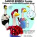 As for the clothing aspect, Morgan learned that goose-lovers find it to be a fun hobby. It’s sort of like having a dog to dress, but you don’t have to feed it, walk it or take it to the vet. Some told her that the hobby provides an escape from the stresses of the world. Still others reported that it provides them with a creative outlet. So, if you happen to have a goose lurking in your garage, make sure it’s “decent” before you put it on your porch or in your garden. I also dare you to google “goose” and see what pops up.