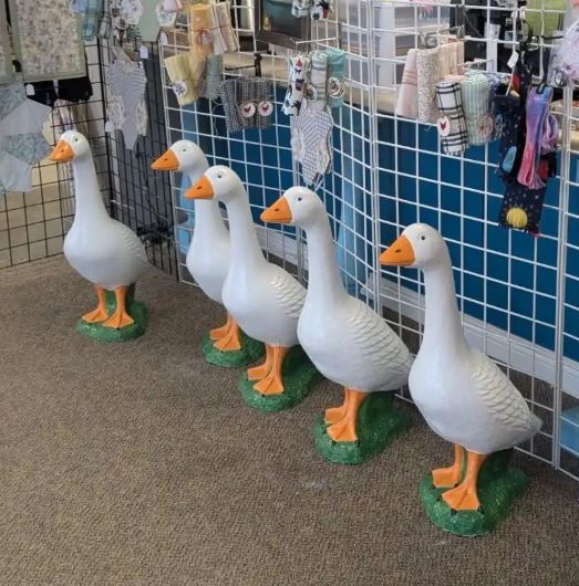 I needed more evidence and hit the Internet. Sure enough, the goose, which is technically referred to as a Porch Goose, Lawn Goose or Garden Goose, is back in vogue. They are popping up at garden centers, statuary shops and online through websites such as Amazon, where one model sells upwards of 500 a month. On the resell market, vintage blow-mold varieties are in hot demand. I also learned the goose hobby is a younger-generation thing, meaning that boomers, who, despite loving stuff, have somehow remained in the dark about the trend.