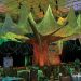 A gigantic tropical tree joined colorful fabric “birds” and huge leaves to create an Amazon Rainforest in 2019.