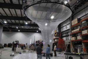 From Tom’s hand-sketched ideas, ATOMIC designer Brie Rogers develops digital 3D models and renderings that provide ATOMIC’s set-construction team with the direction to create construction drawings of the custom elements to be built in its workshop. Among the plans are a replica lunar rover module for the DJ’s booth and a “floating” model of planet Earth.