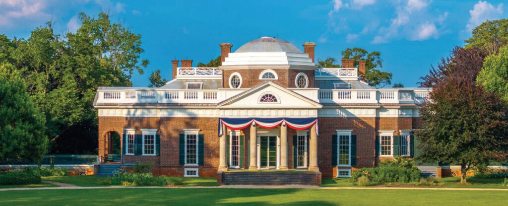 Jefferson’s Monticello features a Greek-Roman-influenced portico and a dome. Monticello photo.