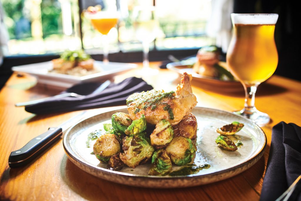 When other restaurants reverted to offering take-out service, the Railroad House remained closed so that projects could be completed. “It was easier to forge ahead and just push through,” Joey explains. When outdoor dining was permitted, the Railroad House’s beautiful patio was in the process of being renovated. “We took out all of the 4,200 bricks and re-laid them in order to eliminate the issue of wobbling tables,” Joey notes. New concrete walkways that skirt the building and lead to others on the property were added, as well. New patio furniture was purchased. Bradley Hagens, who works at the Railroad House and once helped to care for the gardens at Doneckers, added his expertise to freshen and redesign the landscaping.