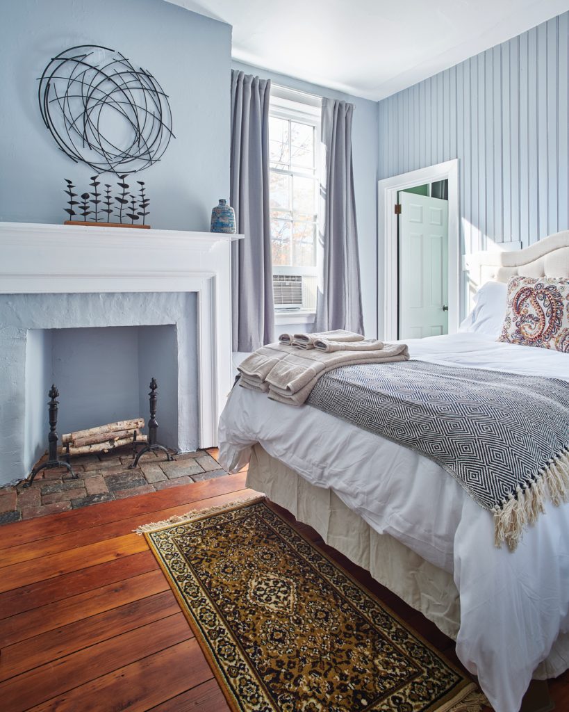 On the upper floors of the inn, they began the process of refurbishing the guest rooms. “They really needed it. I bet they hadn’t been updated in 40 years,” Joey says. “They had become a mish-mash of styles.” Now, the guest rooms are light and airy thanks to the modern color schemes that serve to showcase the architectural details in each room.