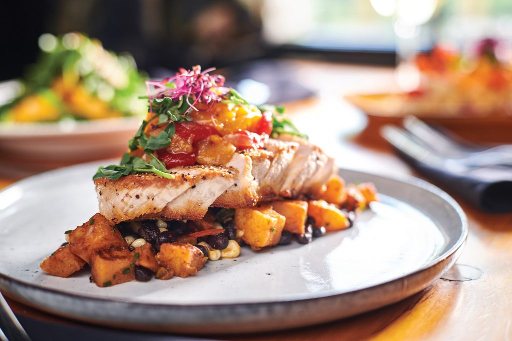 What hasn’t changed is the public’s love of dining out. Now, however, consumers expect restaurants to meet their lifestyle preferences. As a result, the Railroad House’s kitchen staff – which is now led by Taylor Heck – strives to keep current with trends (small plates and farm-to-table) and lifestyle choices (vegan and gluten-free), yet offer guests a well-rounded menu that offers everything from burgers (grass-fed beef, of course, as well as black bean for vegans) to what Joey calls “innovative comfort food” that ranges from gouda mac-n-cheese to low country shrimp boil, pork loin, autumn pasta, Norwegian salmon and steaks. An expansive brunch menu is available on weekends. Ingredients provided by local farmers and purveyors help the menu to evolve on a seasonal basis.