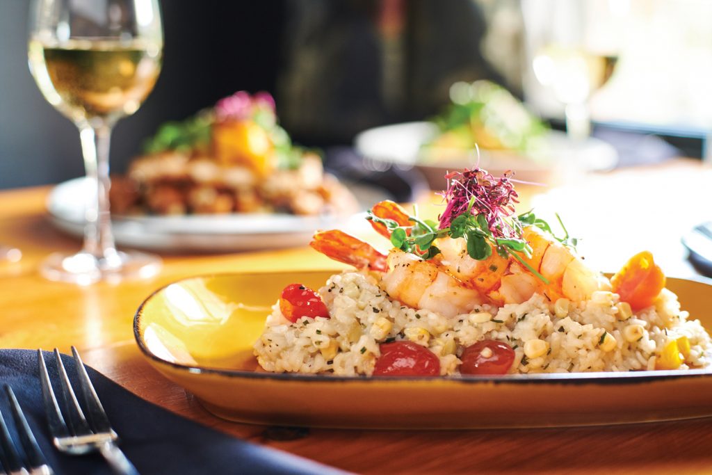 On the menu: Risotto with sweet corn, heirloom tomatoes, Vidalia onions, parmesan cheese, fresh herbs and shrimp.