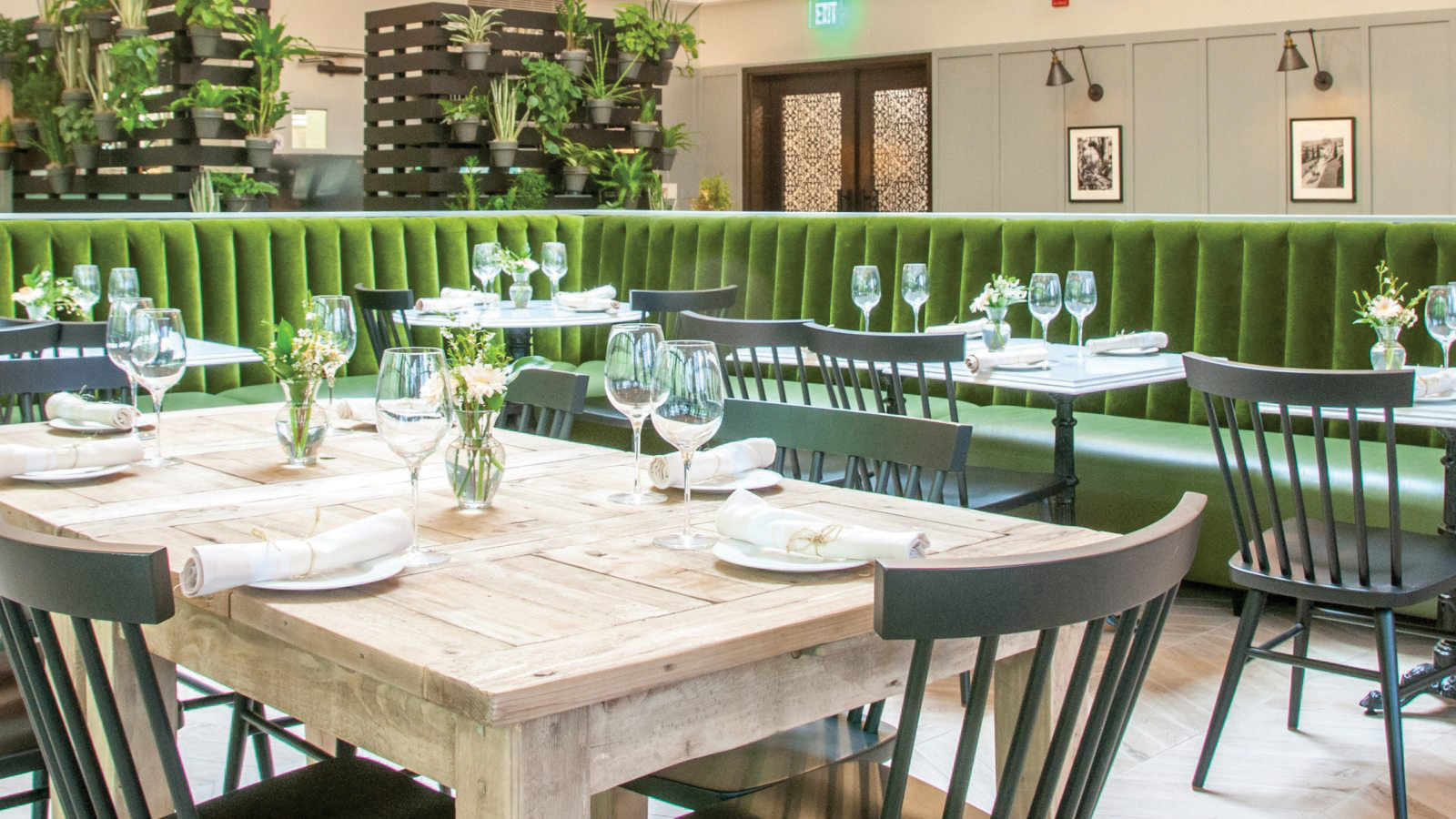 “Green” is the theme of the décor at 1906, where the ambiance could be described as elegant farmhouse. The restaurant will offer special à la carte lunch and prix-fixe dinner menus during A Longwood Christmas, which runs through January 8. Courtesy of Longwood Gardens.