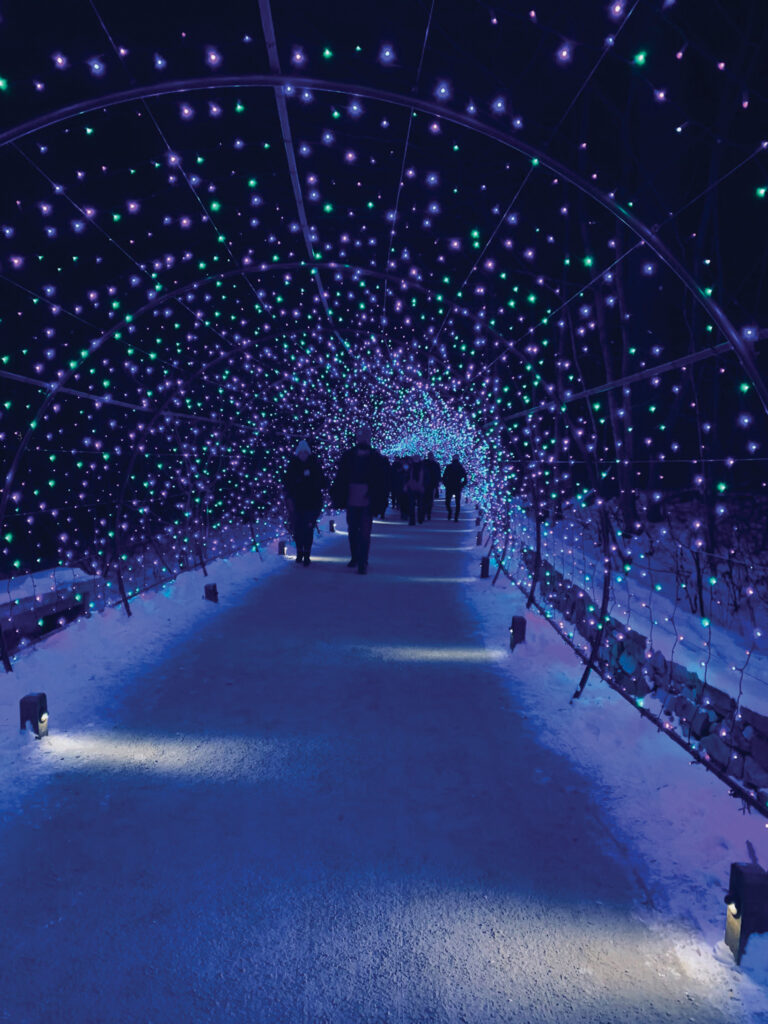 The Conservatory’s water features, lighting displays and towering glass ceiling combined to create a breathtaking scene during last year’s A Longwood Christmas event. Photo by Sue Long.