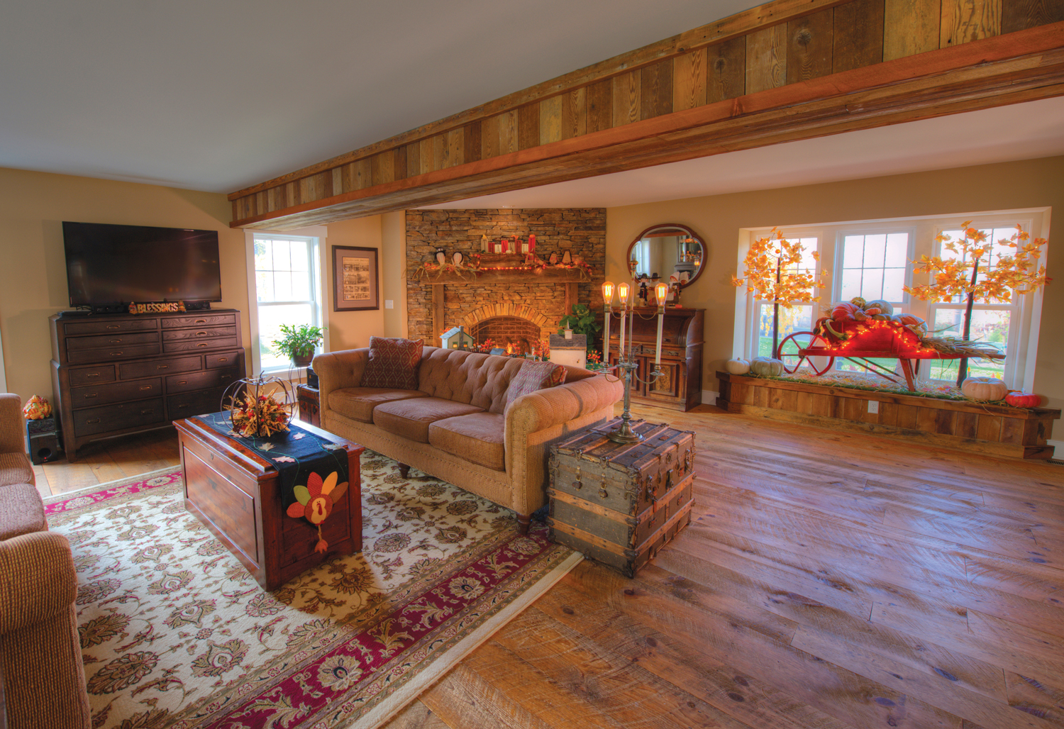 Nathan and Glenn also took green living into consideration. “All the insulation had to be removed and we replaced it with foam,” Nathan notes. “We also tried to recycle what we could.” Unfortunately, the pumpkin-pine floors could not be salvaged. However, original floor boards – circa 1900 – were able to be saved and were used on the ceilings. Original beams taken from the floors were transformed into fireplace mantles. The floors were replaced with rough-cut white pine that was milled in New England and installed using square-head nails and a tongue-oil finish.