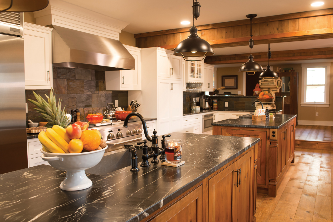 For example, Nathan, who is the consummate cook and baker, had always felt restricted by the parameters of the kitchen. He went to work designing his dream kitchen with the staff at Rojahn Custom Cabinetry in Dallastown, York County. The resulting custom design is twice the size of the previous kitchen and includes two large multi-functional islands. “We do a lot of entertaining, so a large kitchen was essential,” he says.