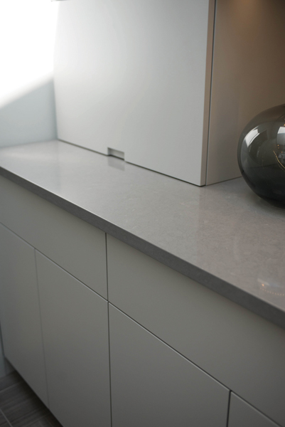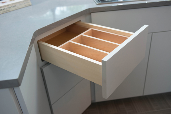 The touch-latch cabinetry is very much on trend and was highly visible at January’s Kitchen & Bath Industry Show (KBIS) that was held in Orlando. Some refer to the style as handless cabinetry, since it allows you to merely bump a cabinet or drawer and it automatically opens. They close just as easily. “All the cabinets in this kitchen are custom,” David points out. “The style gives you a really clean, minimalist look, especially since hardware isn’t involved.”