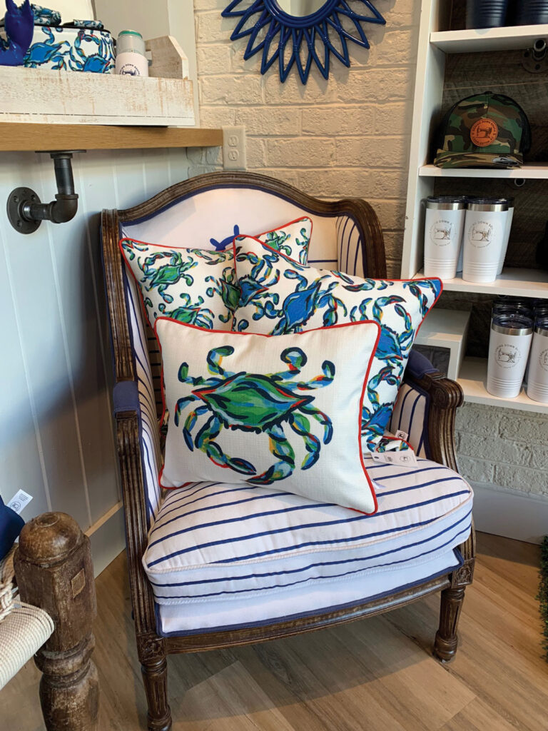 Then, in August, we went to the farmers/makers market that is held at the Avon Pier on Hatteras Island. We oohed and aahed over a maker’s coastal-inspired pillows. Naturally, we had to inspect and discuss each one. The maker just kind of stood and stared at us. “Is something wrong?” I asked. “No,” she replied. “I’ve just never met a guy who is so into pillows.” We bought several and told her to check out Sewing Down South’s website.