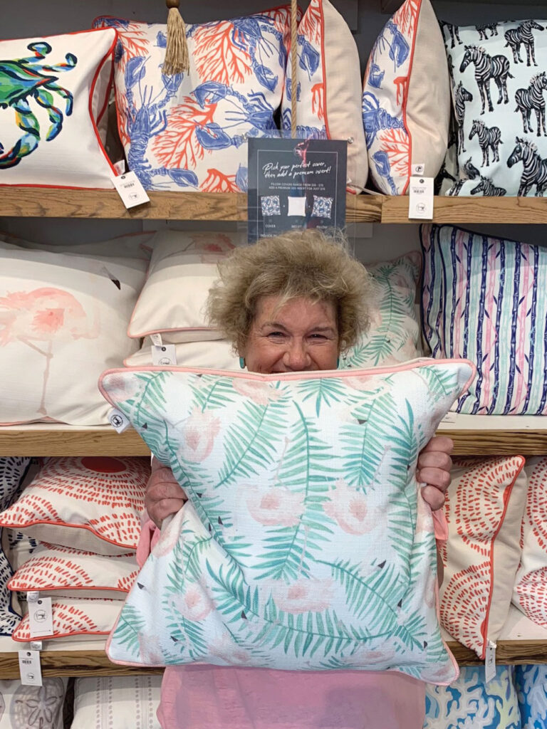 Prior to leaving for Charleston, I called, texted and emailed the store (numerous times) to make certain it would be open July 4. Late that afternoon, Charlie and I walked in and were like two kids in a candy store. It was the day Charlie experienced a genetic transference and became obsessed with pillows. It was as if lightning struck! It was a bummer Craig wasn’t there, but we didn’t care. We were in pillow heaven and had to touch everything. We made our selections and headed off to join family and watch the fireworks over Charleston Harbor.