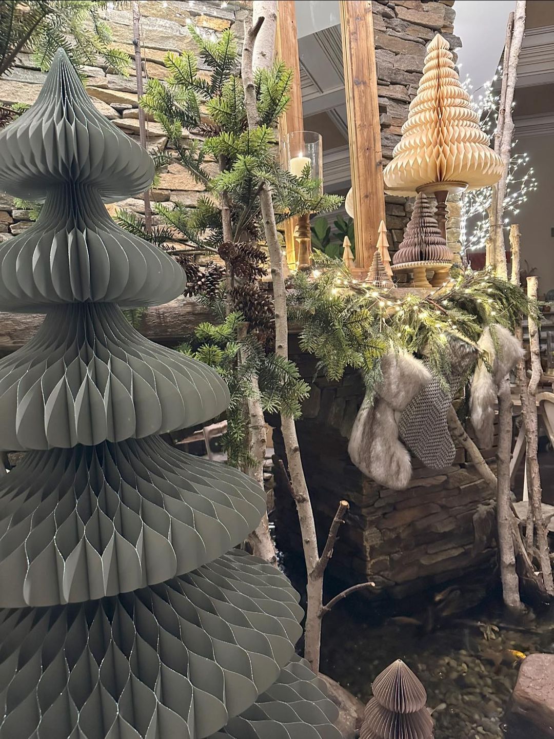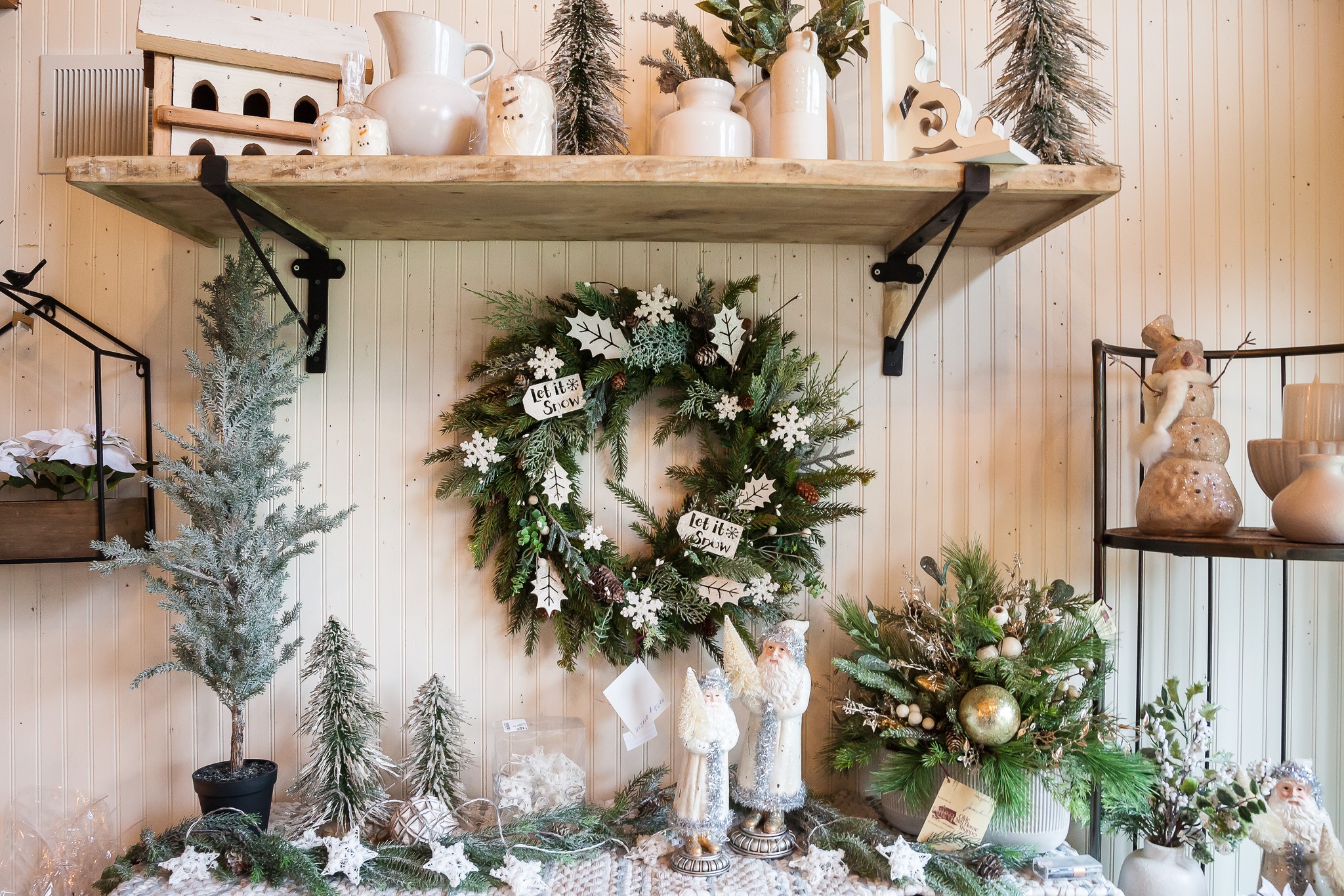 After returning from Furniture Market in High Point, North Carolina, owner Kathy Shenk and her team made like Santa and his elves and got to work transforming the shop/studio into a Christmas spectacular. The trees they designed are decorated around themes such as traditional, vintage and boho. Their decorations speak to trends such as natural elements (cornhusks), sparkle and nature (reindeer ornaments). You’ll definitely be inspired.