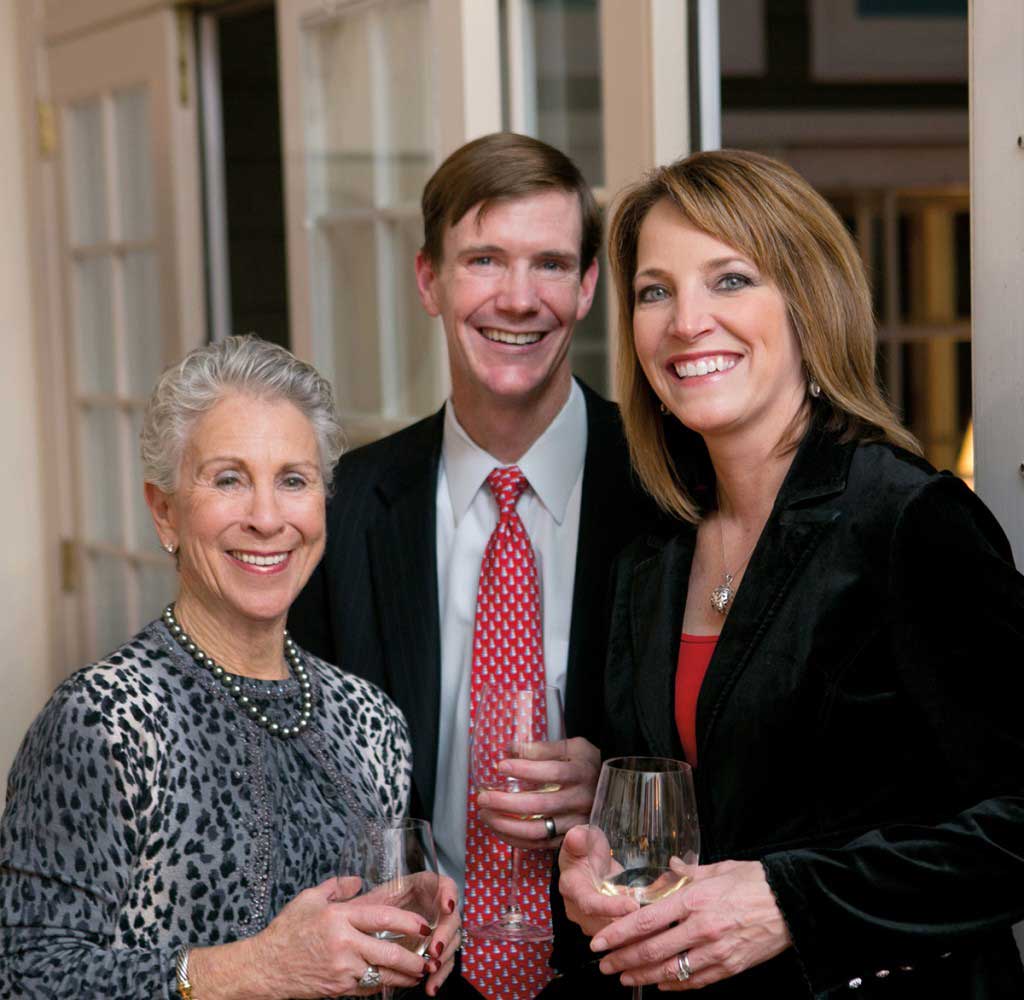 Party hostess Kit Slaugh with event emcee Lori Burkholder and husband Jeff Goss. “It is interesting to think of 100 years from now and know that you were important in the life of a child,” notes Lori, for whom serving as event emcee has brought her close to the mission and cause. Lori reflects that “any one of us could be in need” and by helping Milagro House, “there is a ‘domino effect’… one person helping another person, which is why I find it so compelling. It’s the right thing to do.”