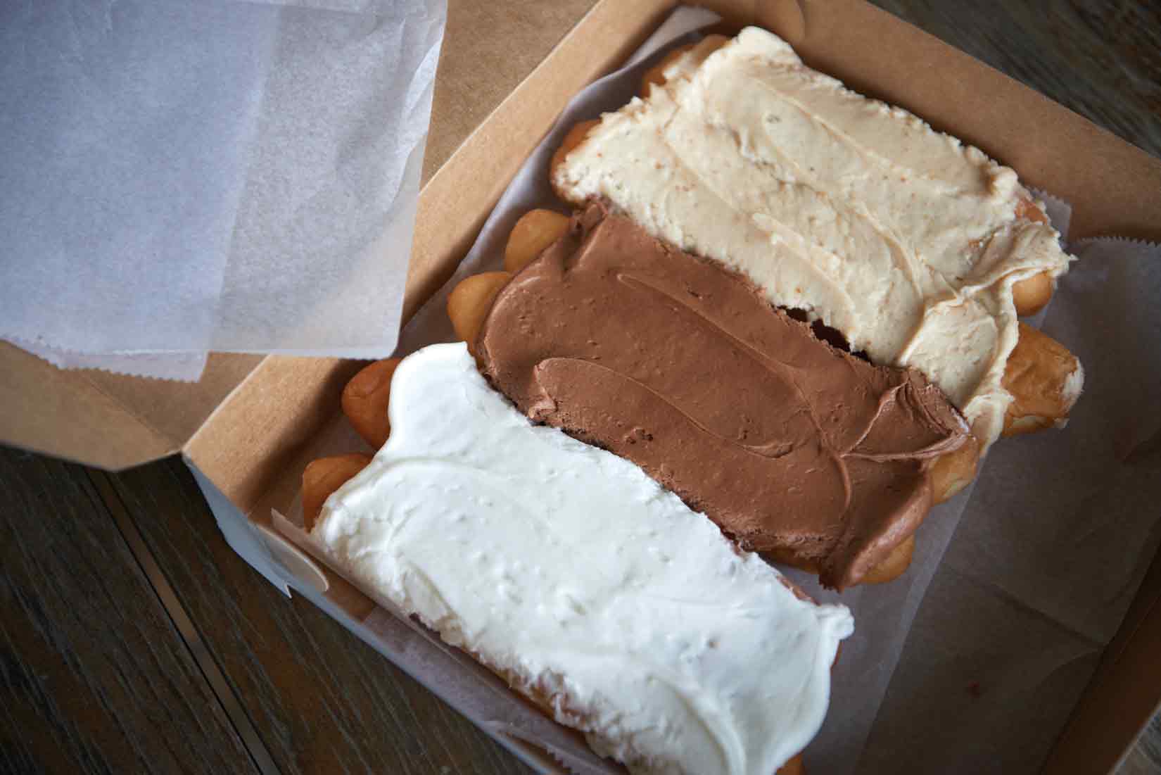 Jordan and I started our tasting adventure at Achenbach’s, where they’ve been creating pastries and baked goods the old-fashioned way (i.e., from scratch) since 1954 (which means they are celebrating their 70th anniversary this year). You haven’t lived until you’ve tasted one of Achenbach’s signature Long Johns. Staring into the case filled with the treats, Jordan recommended we go for it and order what he calls the “trifecta” of Long Johns, i.e. the doughy confections are iced with oh-so-sweet vanilla, chocolate and peanut butter frosting. Sounded like a plan, so we ordered three in each flavor and retreated outside to sample them on the porch. Oh, they were so, so good! (To avoid temptation, I made Jordan take the leftovers home with him.) Long Johns have proven so popular that they are used to create special occasion cakes (even for weddings). There’s even a Long John Eating Contest at the New Holland Fair.
