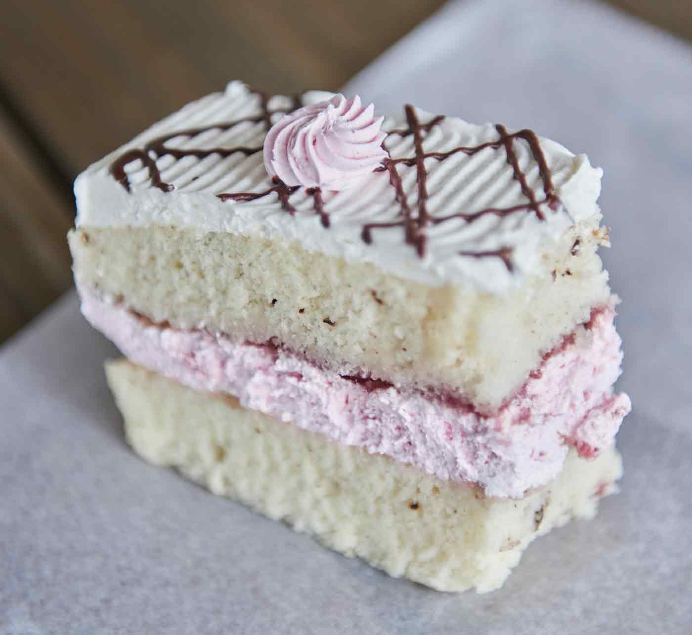 Earlier this year I happened to be in Leola and decided to treat myself to something from Byers. As I perused the display case, my eyes grew wide when I spied a piece of White Rhapsody cake. I hadn’t tasted its fabulousness in years. Arriving home, I polished it off after dinner. It was as tantalizing as ever. Envision moist white cake with chocolate shavings folded in. The cake layers are separated by raspberry marmalade and mousse. Buttercream frosting completes the picture. While it’s a top flavor for wedding cakes, the good news is White Rhapsody can be ordered as a birthday cake, for an event such as a dinner party, or in my case, if you’re just craving a piece of it. Since we were in the vicinity, I suggested to Jordan that we stop. Fortunately, a piece of White Rhapsody awaited!