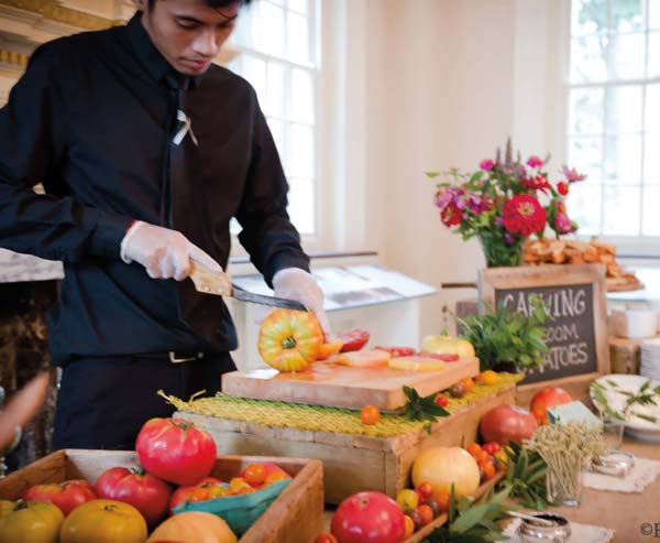 osts are demanding health-conscious menu options like vegan/vegetarian stations, treating this segment of their guest list as part of the party menu, not as a special request. Local, seasonal and wisely sourced items are and will continue to be the trend, Kaitlyn adds. “Build-your-own” menu options are also a current hit, from wood-fired pizza to bruschetta to pasta.