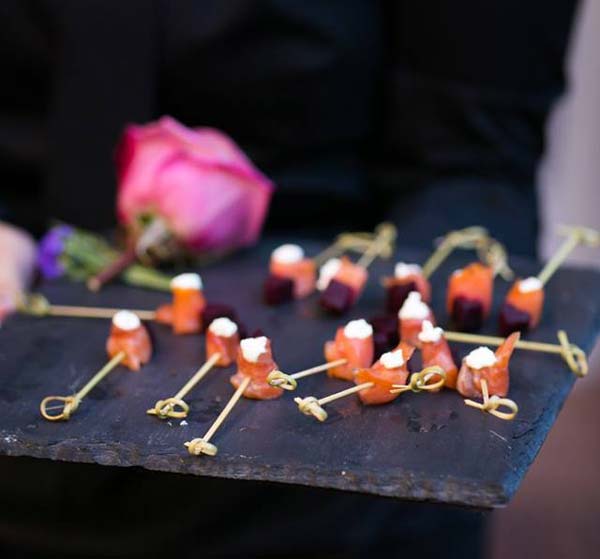“Everything old is new again,” adds Pol. The cocktail buffet, a classic form of entertaining from the ‘60s, is back in vogue and renamed as food-station dining. Smaller plates, addressing an ever-broadening variety of tastes and health/allergy constraints, and a more flexible sense of timing are all practical reasons why food stations are all the rage for weddings and other entertaining. “Providing choices is paramount and is very much what leads the menu design for most hosts,” says Kaitlyn.