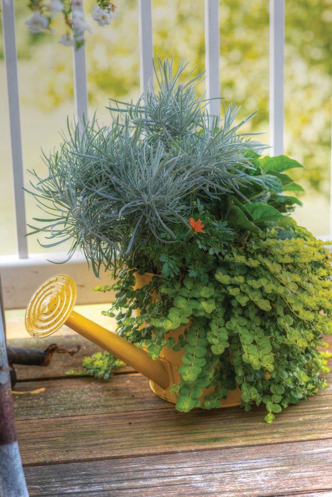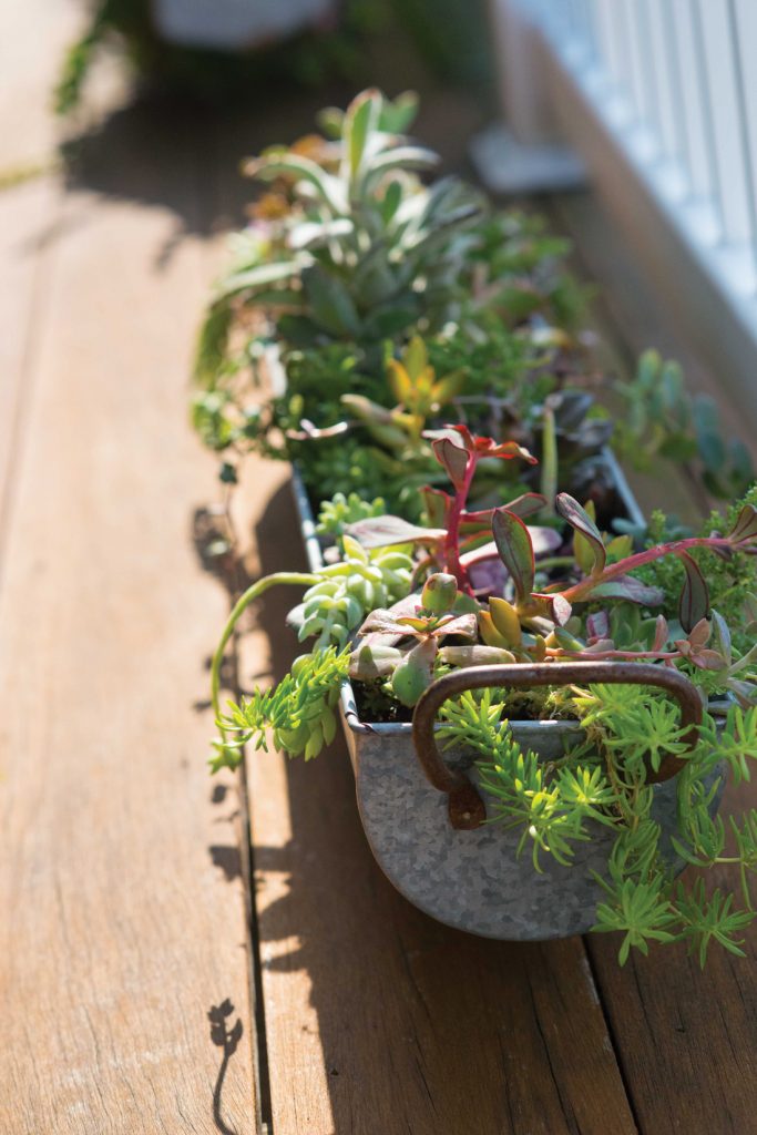 Kelsey’s green thumb extends to her love of combining succulents and other plants with unique containers that she “picks” from a variety of sources.