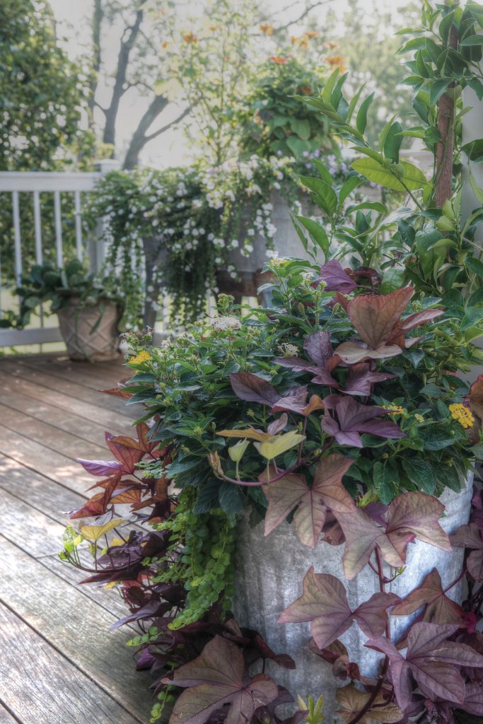 Outdoor-living spaces now bloom with traditional gardening plants and houseplants/tropicals that benefit from spending the summer outdoors.