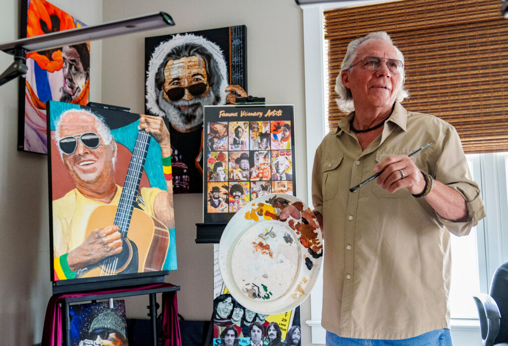 Valerie reports that the biggest challenge in moving was finding the perfect area for Fred to set up his art studio. Fred has been an active artist since 1969 (visit his website at fredswarr.com). His current focus is on the celebrity portraits he creates using acrylic paint, sheet music and printed posters for backgrounds and then painting very detailed portraits of his subjects, the favorites being musicians, in the foreground. The technique results in two-dimensional, mixed media studies of subjects that have included Mick Jagger, Taylor Swift, Willie Nelson, Jerry Garcia, the Beatles, Bruce Springsteen and many more. He also did a series dedicated to visionary artists that follow a similar format. He’s also a master at capturing the natural world through paint. Fred’s work is included in the private collections of universities, businesses, churches and collectors. His music-artist series was on view at the Lititz Shirt Factory two years ago.