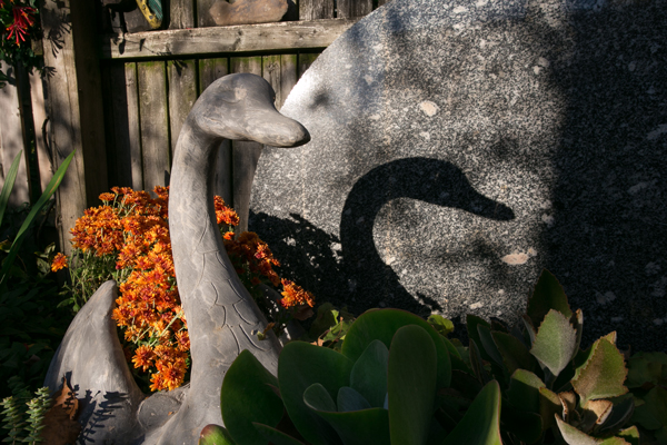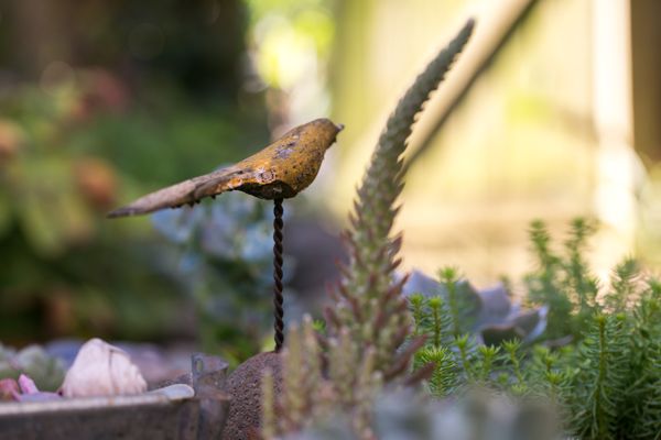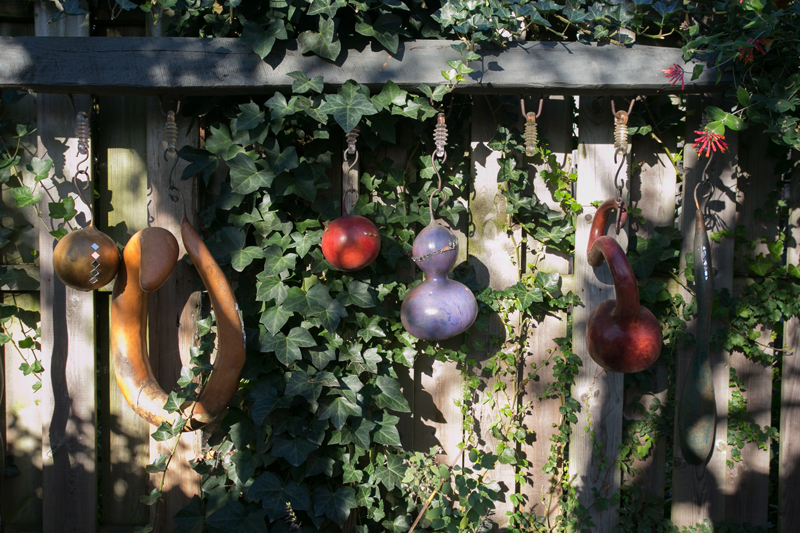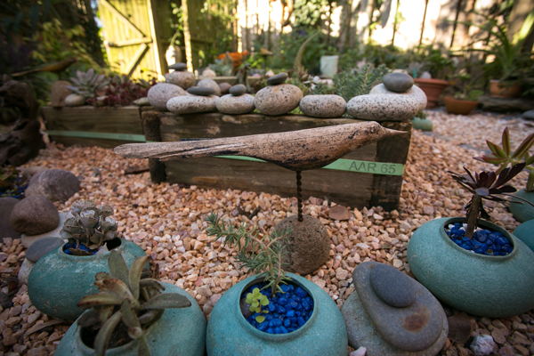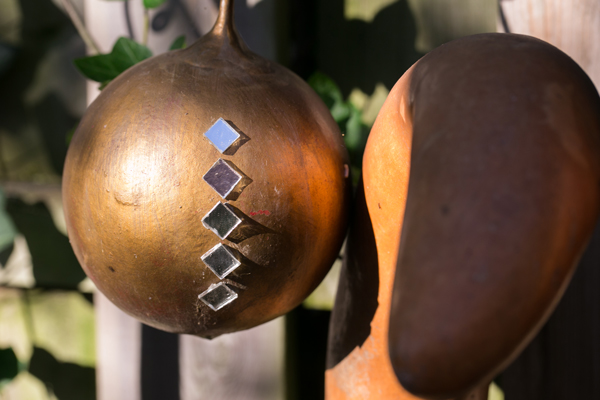 Garden art is also very obvious. “Everything is an art project!” Victoria laughs, naming gourds as one of her obsessions. She paints them, embellishes them with mosaics and makes bowls out of them. Mosaic stepping stones are also her handiwork.