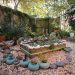 The outer edges of the garden are filled with flowering plants, shrubs, vines and container gardens.