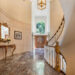 The marble floor that defined the foyer didn’t complement the style and color of the double entry doors or the style of the winding staircase. Finally, they debated whether to keep the heavily paneled home office as such or repurpose it.