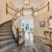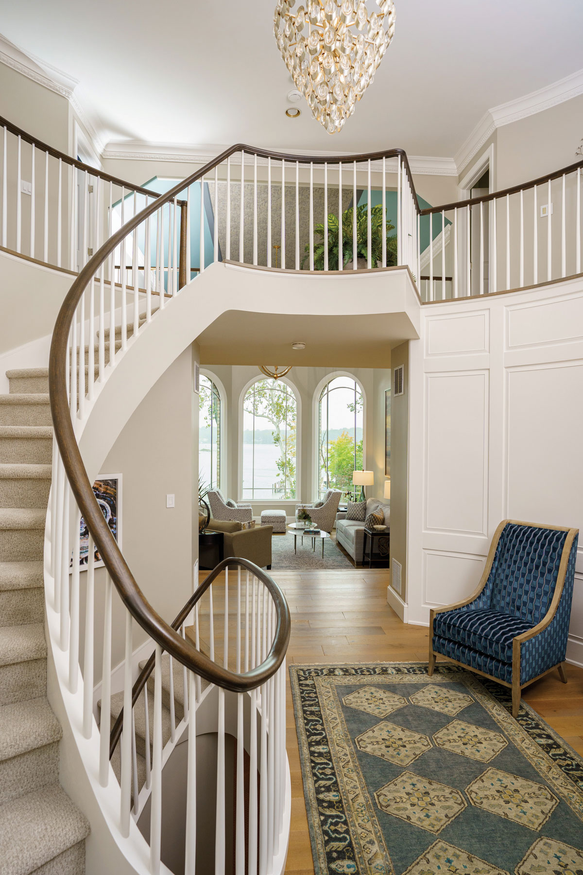 The new staircase winds its way from the lower level to the second floor. New hardwood flooring that is used throughout the main level replaced the marble and five hardwood finishes that once defined it.