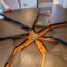 The round table employs pie-shaped “leaves” that pull-out to easily expand the table’s dimensions. Kathy spied the tables at Furniture Market and shared her find with her clients, thinking the design would be a perfect solution for their needs. “We’ve had as many as 12 people seated around it,” the homeowner reports.