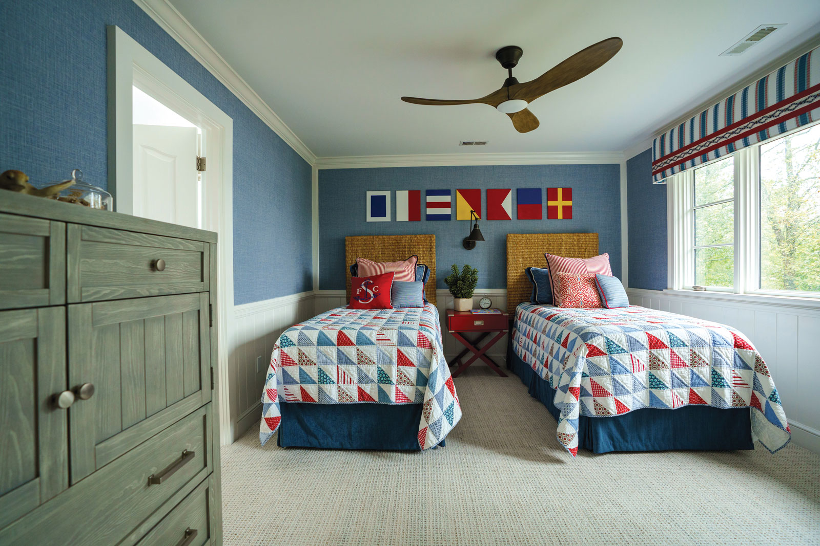 The Annapolis house has also become a perfect getaway for the couple’s Lancaster-based daughter and her family, as well as for their other daughter (and her friends) who lives in D.C. The second-floor guest rooms are decorated to reflect their style personalities. Their grandson’s room is pure coastal, as it exhibits a colorful nautical theme.