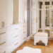 A glam walk-through closet keeps clothing and accessories organized and contained.