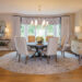 A light-filled breakfast room features transitional furnishings and a vinyl carpet.
