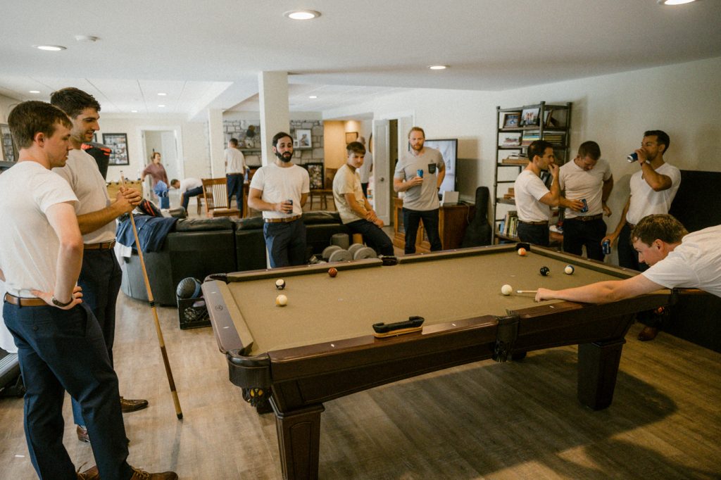 Tommy and his groomsmen got ready for the wedding by lounging around the pool and playing billiards at the FitzGeralds’ home.