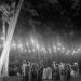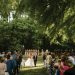 As guests arrived – many via motor coaches that were contracted to provide transportation between the city and the FitzGeralds’ home – they were greeted at the main entrance to the house with refreshments and a display of wedding portraits from the two families. After signing the guest book, they made their way to the backyard and the seating area that was located beneath towering cypress trees and provided a stellar view of the island, where the 5 p.m. ceremony would take place. After the ceremony, cocktail hour was held along the banks of Mill Creek. Yard games, such as corn hole, dotted the landscape. Then, it was on to the tent for dinner and dancing. Guests could also enjoy a bonfire in a wooded lounge area that was illuminated by twinkle lights.