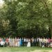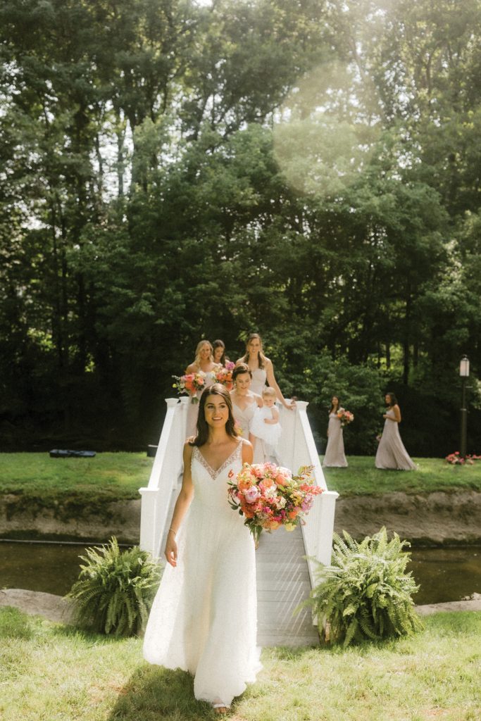 Megan and her attendants cross the bridge to the ceremony site. A month later, storms would cause serious damage to the bridge and bring flooding to the backyard.