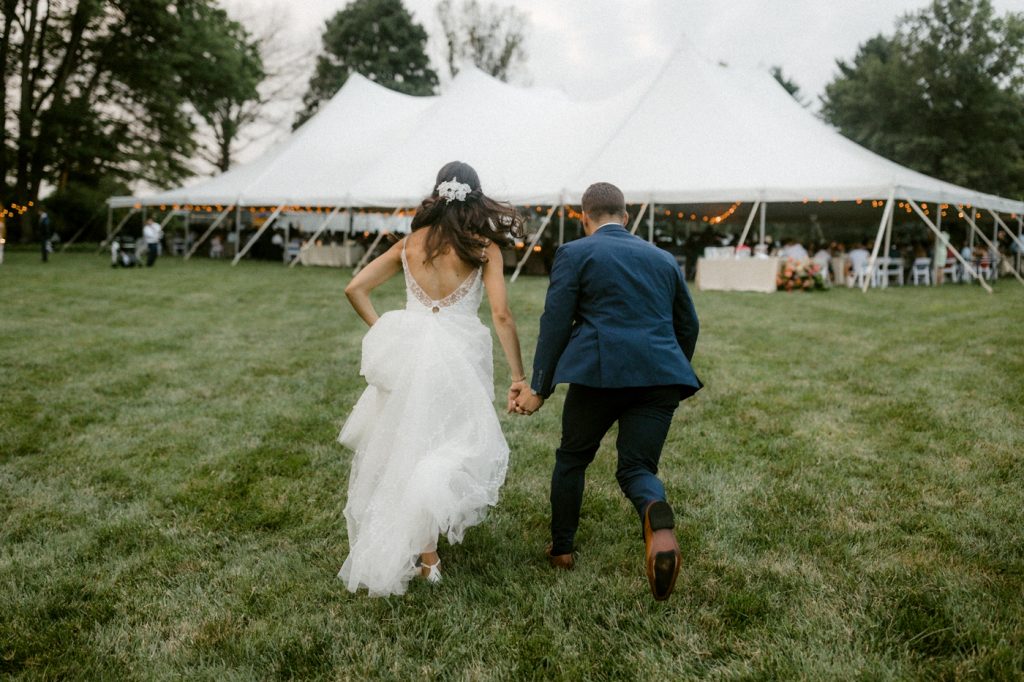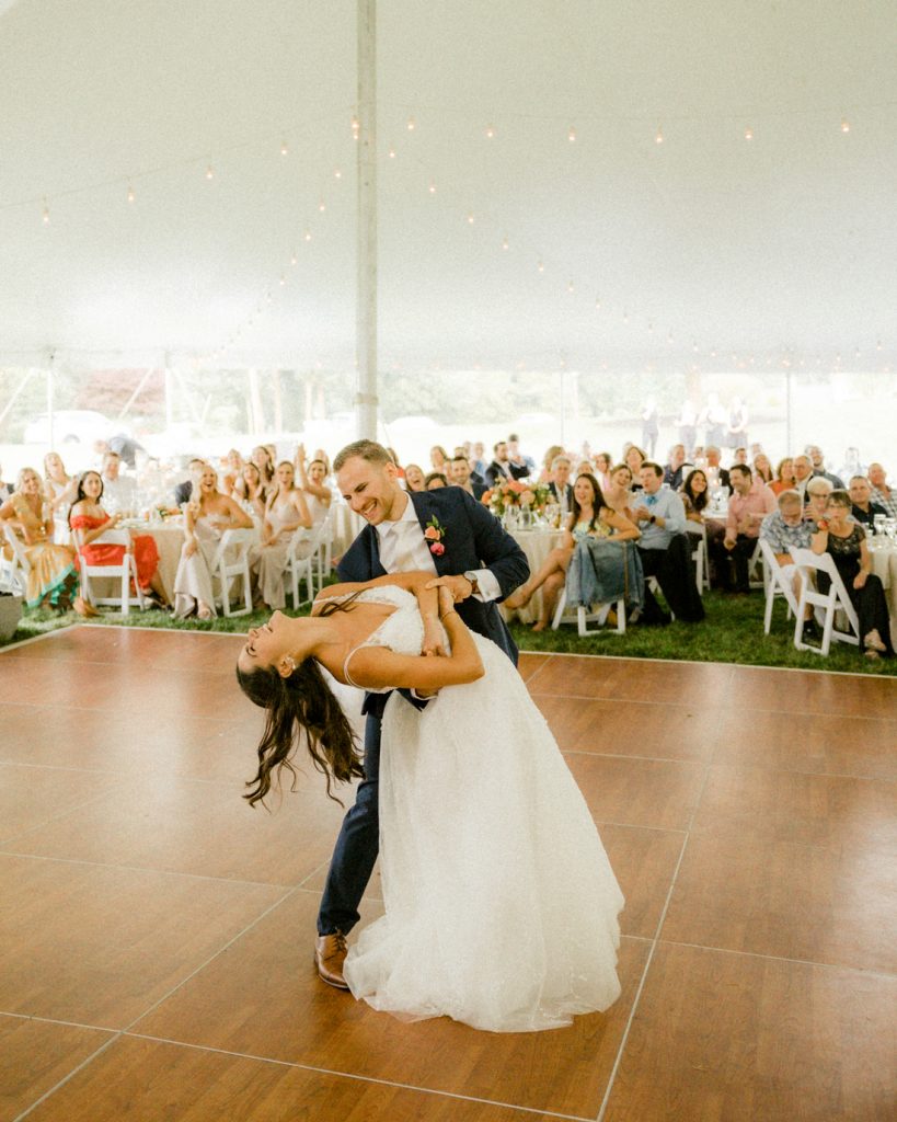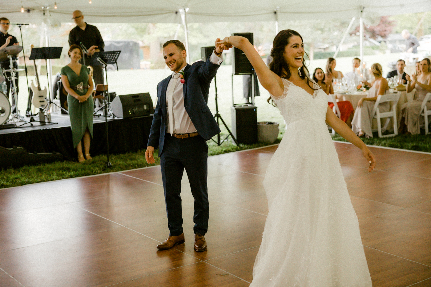 Tommy and Megan survey the tent from the dance floor ahead of the reception. Their first dance was to Shelter From the Storm by Bob Dylan.